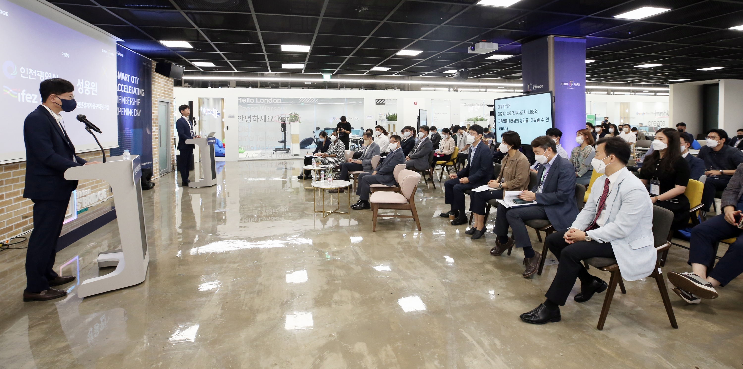 On July 13, 2022 (Wednesday), IFEZ held an event to mark the first anniversary of the partnership between Shinhan Financial Group and Google Startup Campus. After the partnership between the three organizations was signed in April 2021, Google and Shinhan Financial Group selected and fostered 20 smart city startups through the startup incubation platform "Shinhan Square Bridge Incheon." It was also linked to global partnerships with 28.2 billion won in investment attraction, and showed a significant increase in corporate value.