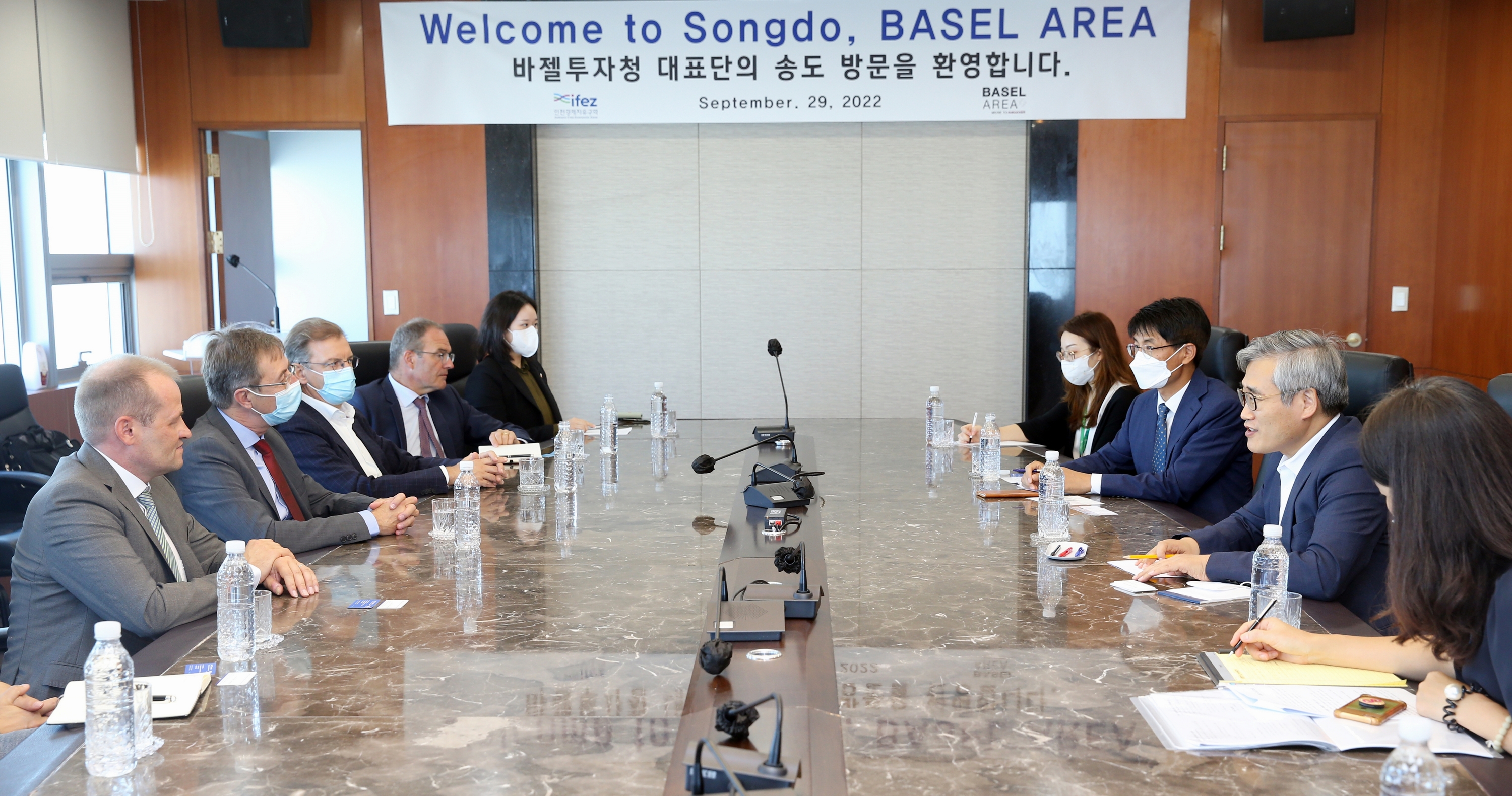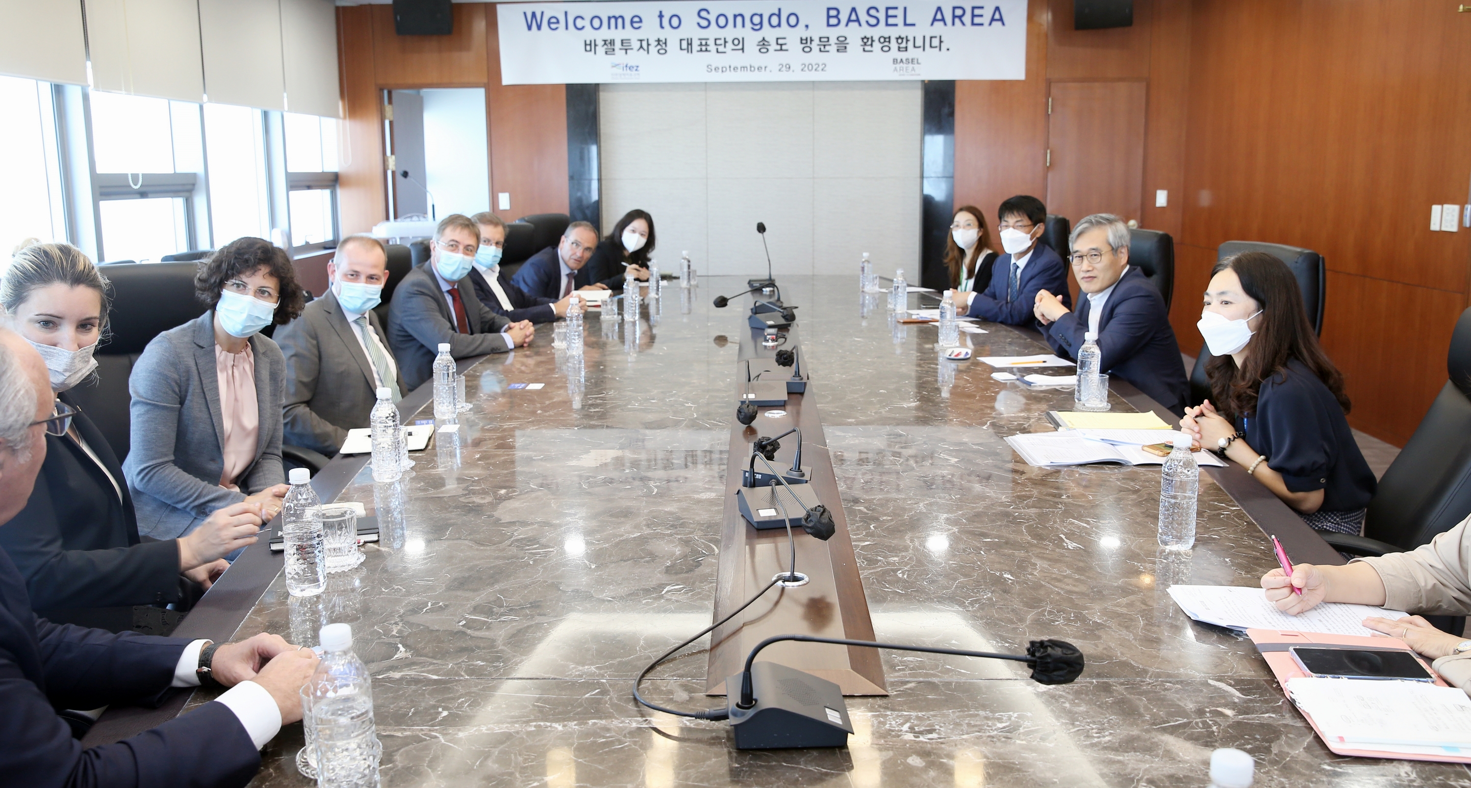 On Thursday, September 29, 2022, IFEZ Commissioner Kim Jin-yong talked with representatives of 10 private and government agencies in Switzerland, including Christof Klopper, CEO of Basel Area Business and Innovation.