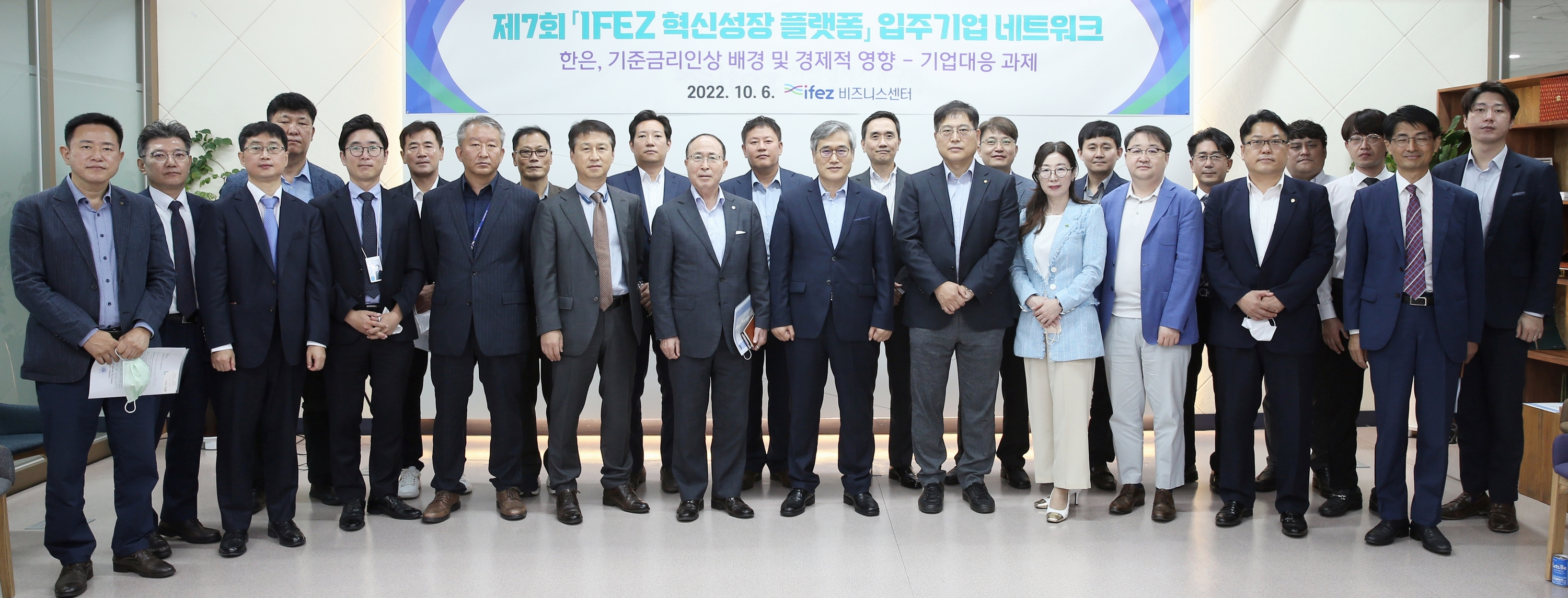 On October 6, 2022 (Thursday), IFEZ held the "7th Incheon Free Economic Zone (IFEZ) Innovative Growth Platform" under the theme of "Background of the recent rate hike, economic impact, and corporate response tasks." The IFEZ innovation growth platform is an open space (conference) that communicates the issues of companies through various forms such as win-win development discussions, small meetings by field, and seminars for win-win development with tenant companies.