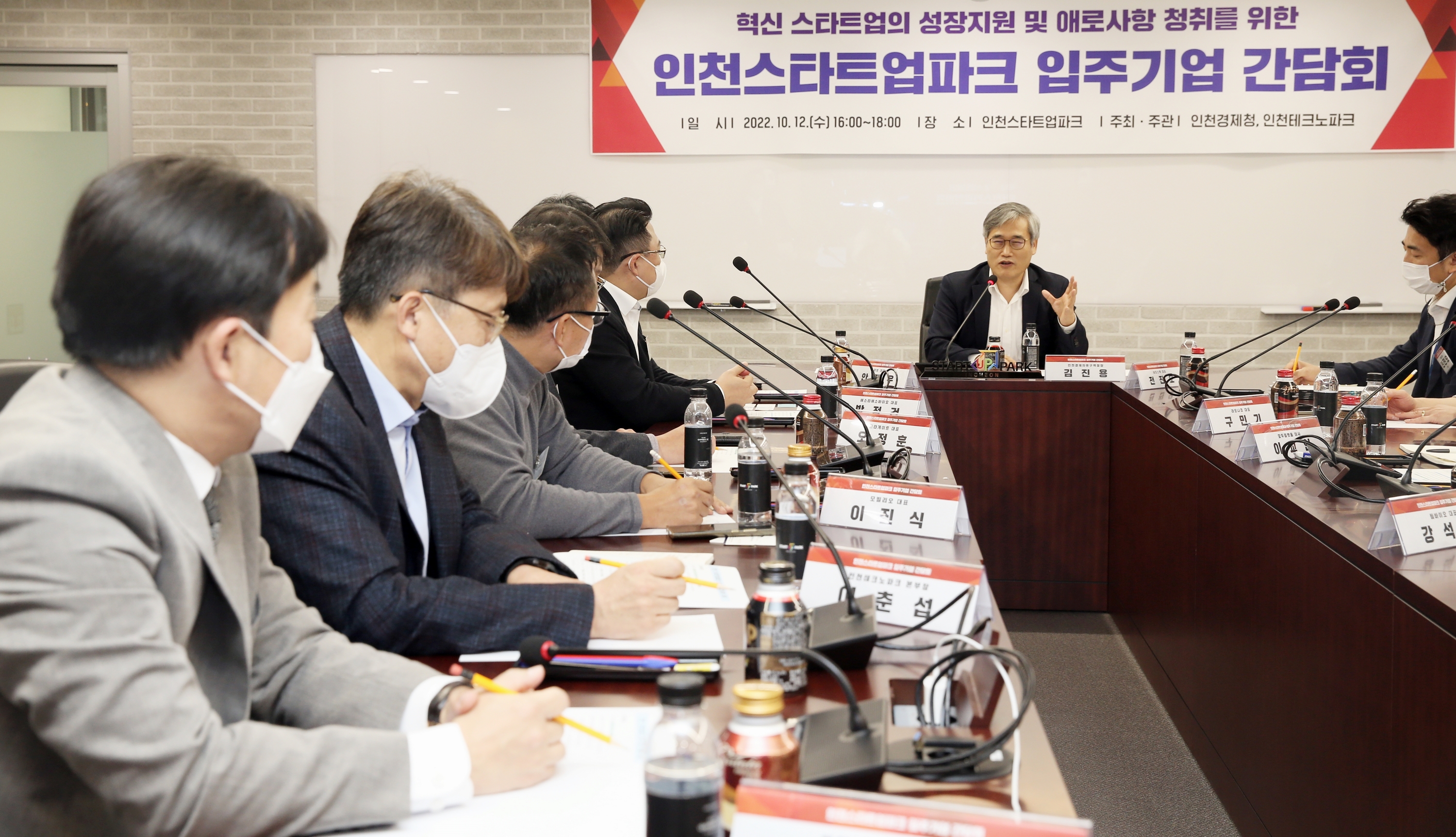 On October 12, 2022 (Wed), IFEZ held a meeting of companies that moved into the startup park. Eight startup officials attended the meeting, including △ Ribo, △ STS Bio, △ Pentagate, △ Mobilio, △ Neostech, △ Raonak, △ Modu Platform, and △ Team Bio. Officials from start-ups shared various opinions such as expanding workspace and empirical resources considering the growth of companies, supporting investment and strengthening supply and demand for excellent workers due to shrinking investors and related markets.