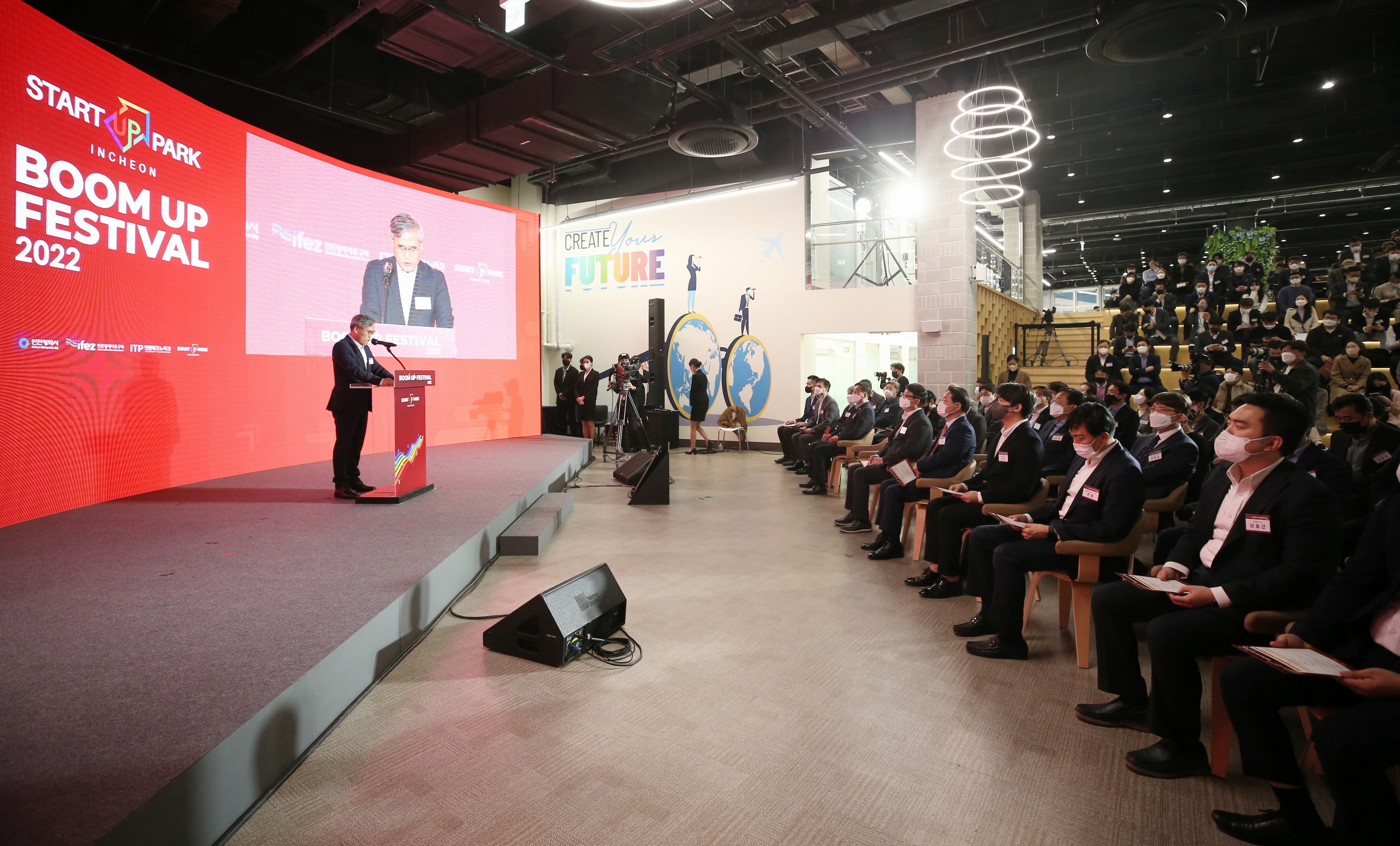 On October 20, 2022 (Thursday), IFEZ held the Incheon Startup Park Boom Up Festival. The festival was held with various programs such as "IR Showcase" with △ startups and investors, △ "Startup Innovation Growth Demonstration Talk Show," △ "Spark Conference," △ Spark IR Day, and expert consulting. In addition, a "business agreement to foster innovative bio startups" was signed, and an event was held to declare a "free zone for demonstration" to turn the entire Incheon Metropolitan City into an empirical resource.