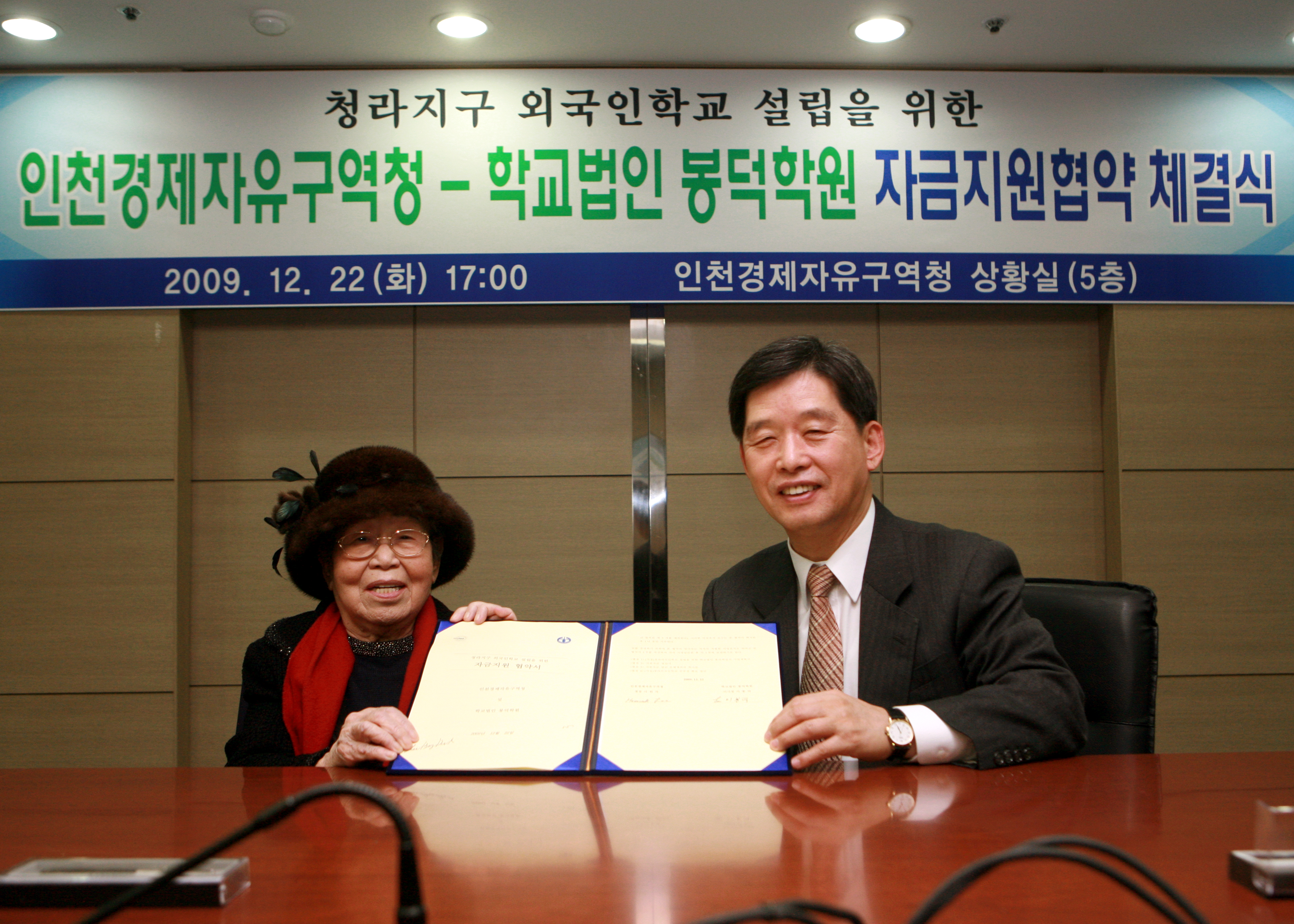 On Tuesday, December 22, 2009 IFEZ signed a funding agreement with Bongdeok Academy, a school corporation, for the establishment of a foreign school in Cheongna International City.