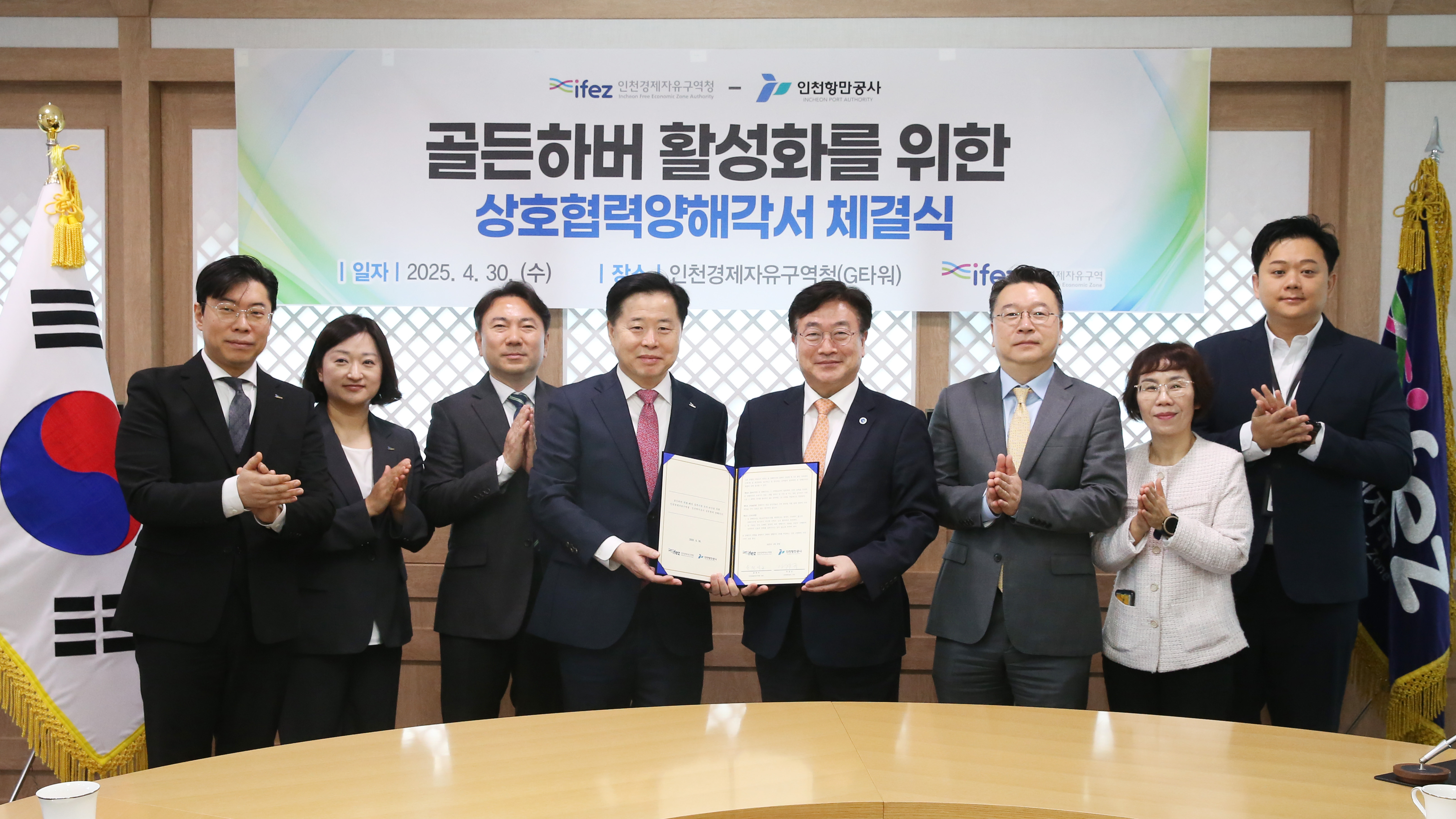 On April 30, 2025, (Wednesday), IFEZ signed a "MOU for Mutual Cooperation to Attract and Create Golden Harbor Tourism and Leisure Attractors" with Incheon Port Authority at Songdo Tower. This agreement is designed for the two organizations to establish a one-team system and strengthen cooperation to attract global investment in the Golden Harbor project.