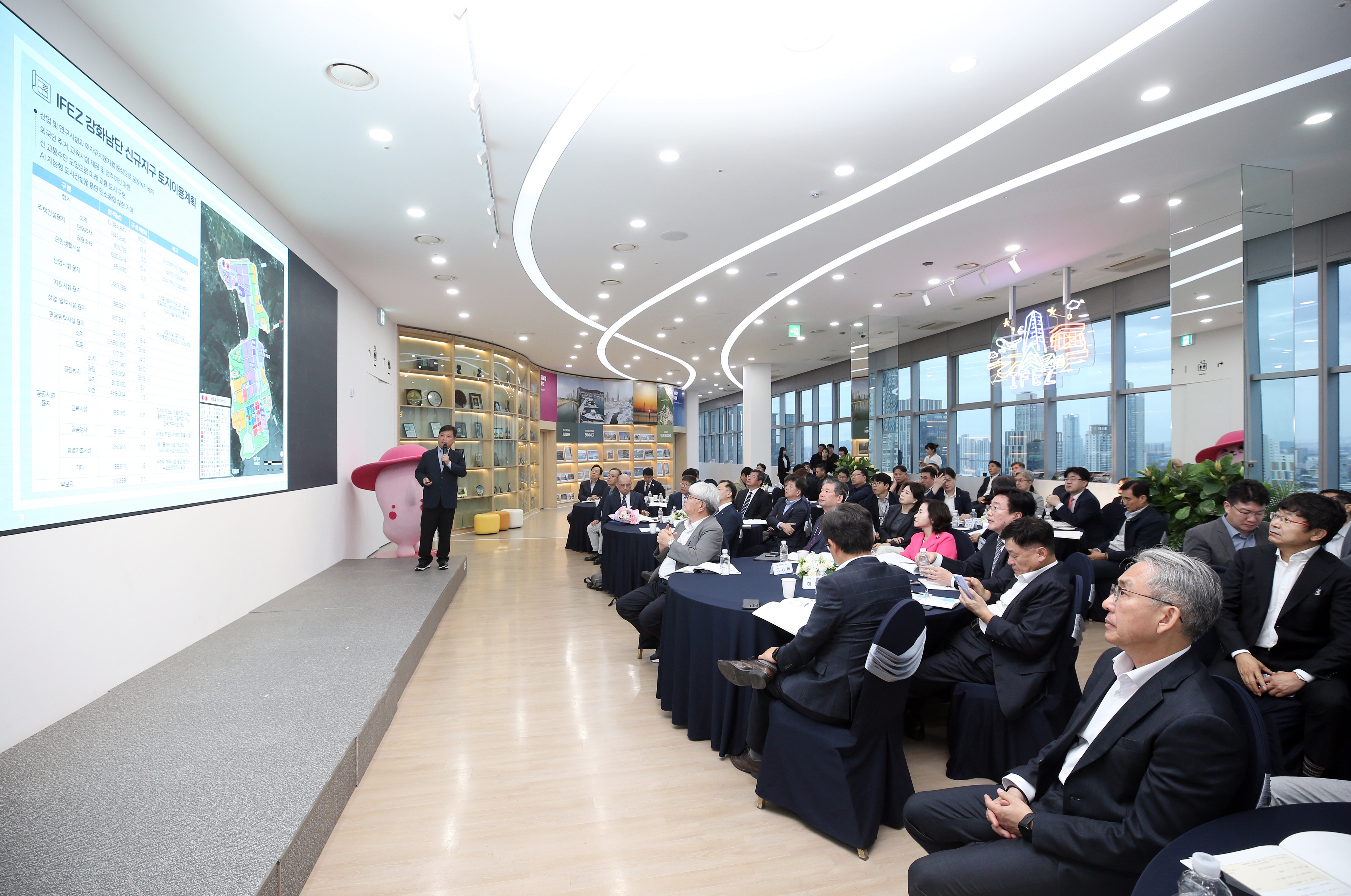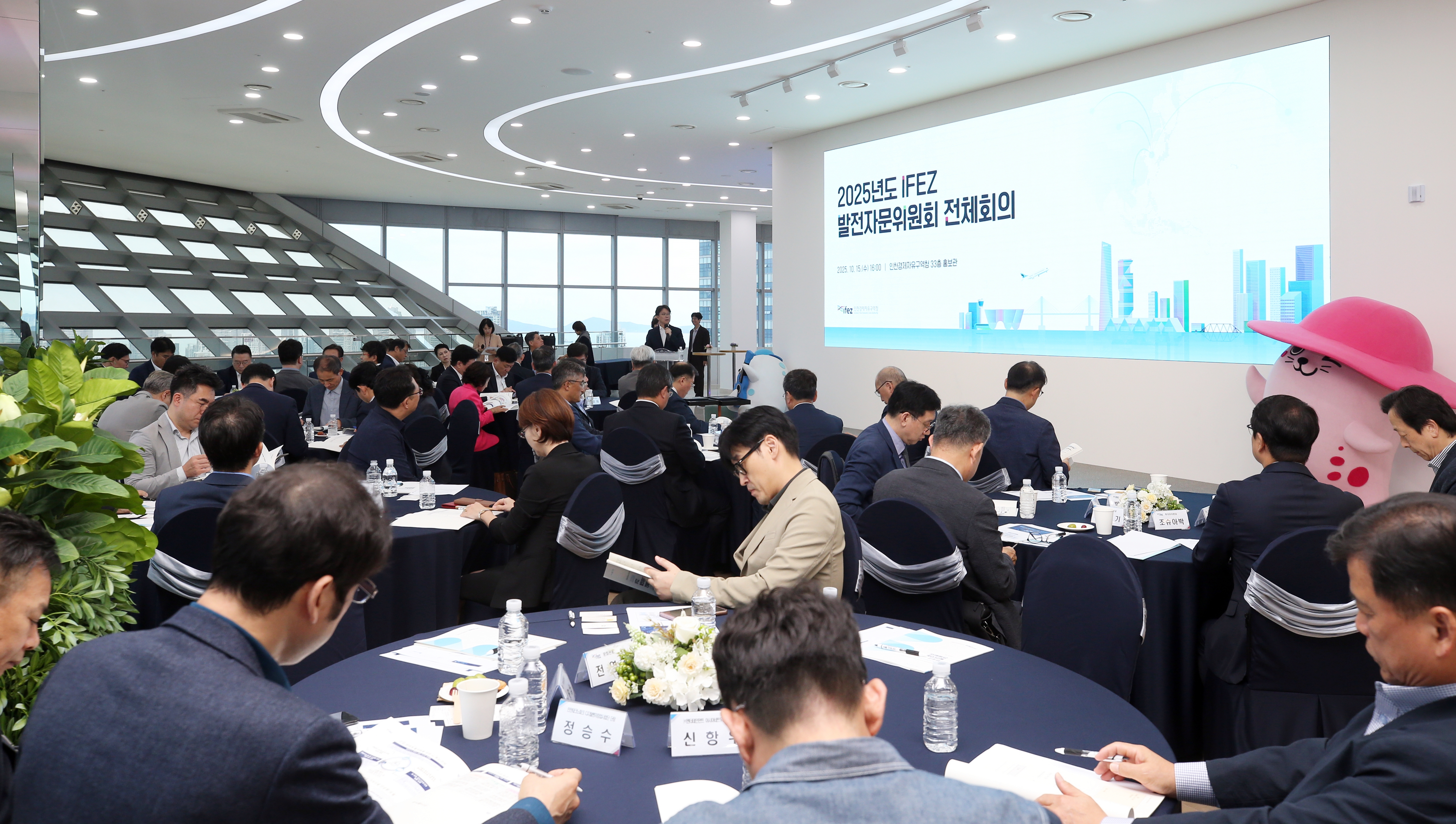 On Wednesday, October 15, 2025, IFEZ held the ‘IFEZ Development Advisory Committee Plenary Meeting’ at G-Tower in Songdo International City. Marking the 22nd anniversary of IFEZ, 38 committee members attended to discuss new growth engines for IFEZ, including the designation of Ganghwa South as a new Free Economic Zone, the creation of K-Conland, and AI-centered bio and content industry strategies. Presentations and discussions covered AI-based smart cities, carbon-neutral strategies, global film production incentives, and digital content industry innovation, outlining concrete strategies for IFEZ to advance as a ‘Global Business Innovation Hub’.