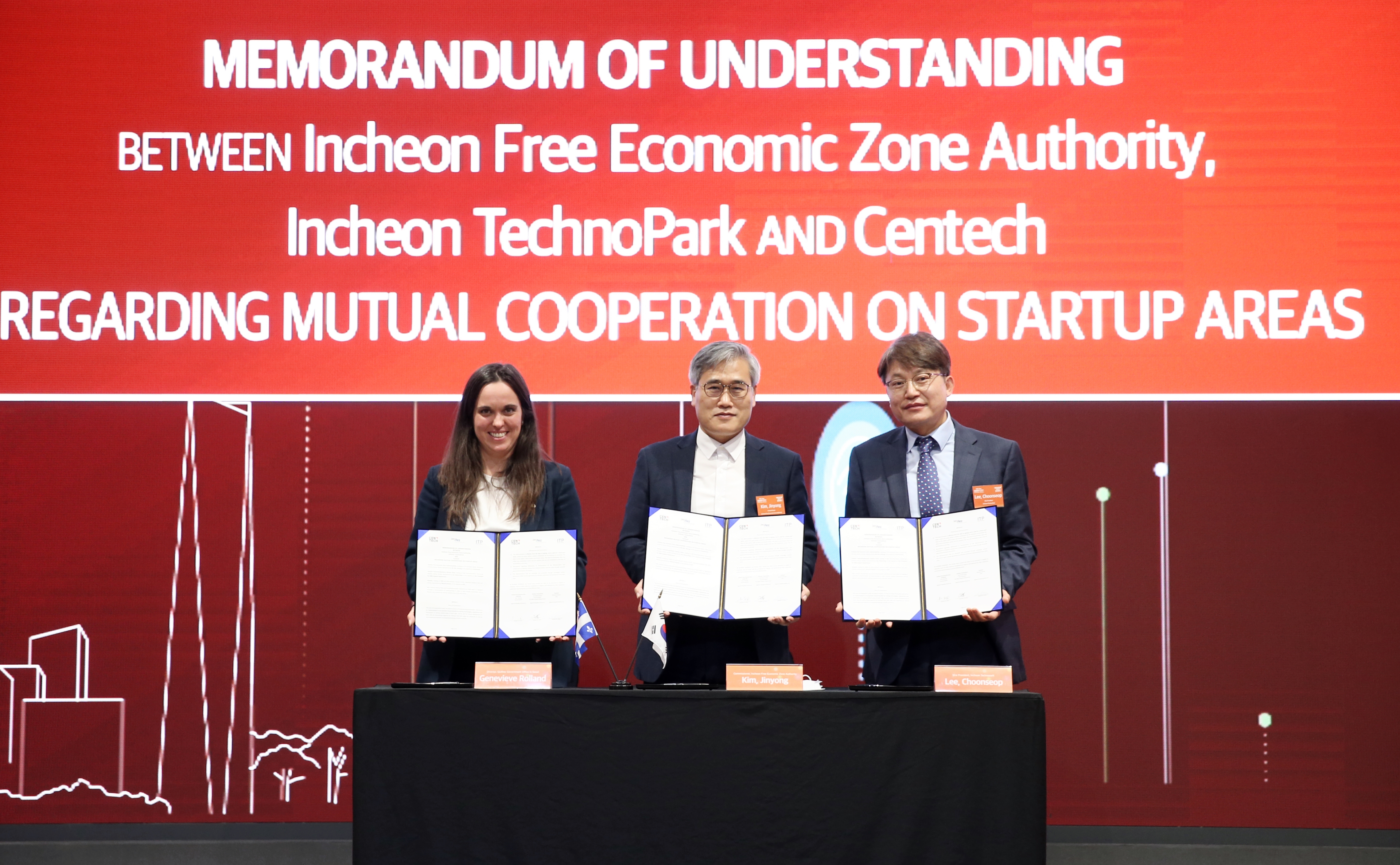 On October 25, 2022 (Tuesday), the Incheon Free Economic Zone Authority (IFEZ) hosted the IFEZ Smart City International Symposium. The event was held at Gyeongwonjae Ambassador Incheon Hotel and livestreamed online. IFEZ, together with the Incheon Technopark and CENTECH, a non-profit startup incubation organization based in Quebec, Canada, signed a memorandum of understanding (MOU) to support exchange and cooperation between startups from both countries aimed at expanding into global markets. Through this agreement, a foundation was established for collaboration among innovative, technology-driven startups.